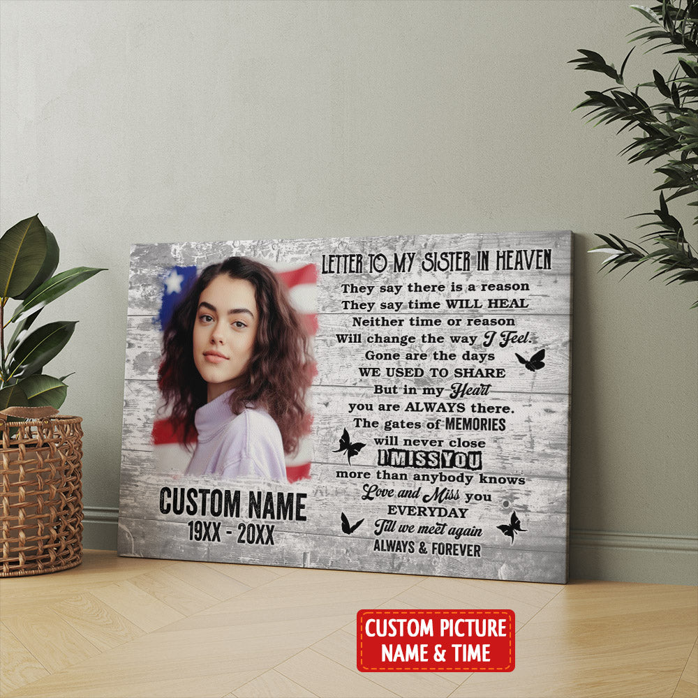 Sister Memorial Canvas Gift| Personalized Sympathy Gift For Loss Of Sister| in Loving Memory of Sister NXM410