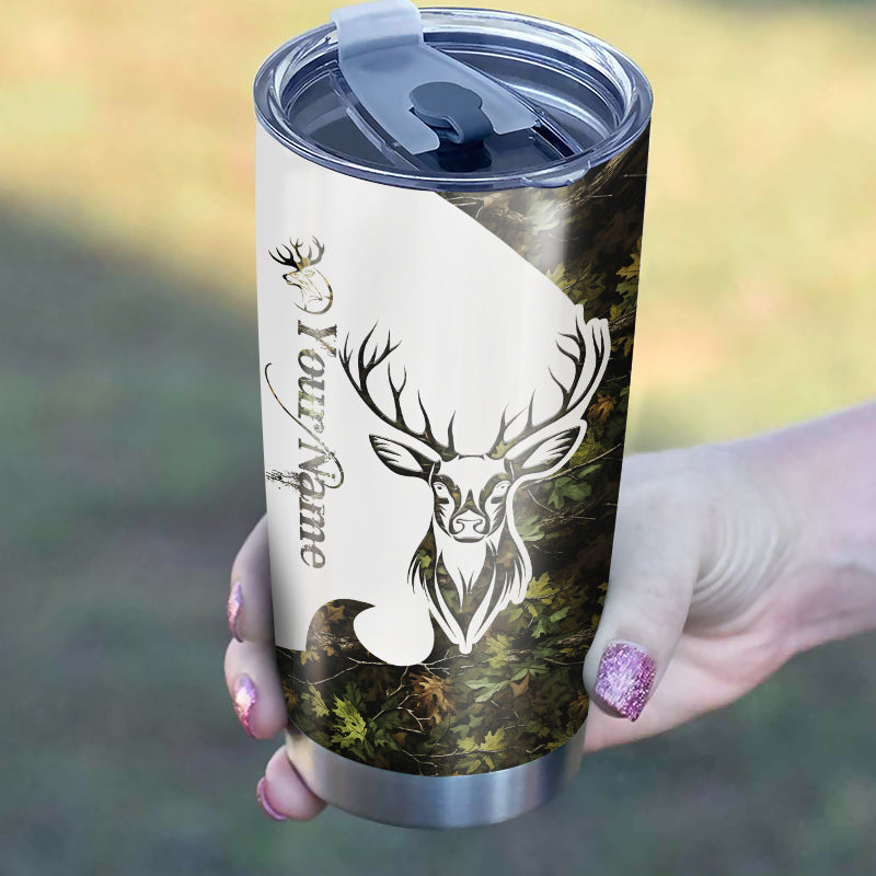 Deer Hunting Tattoo Green Camo Customize name Tumbler Cup Personalized Hunting gift for Hunter - NQS217