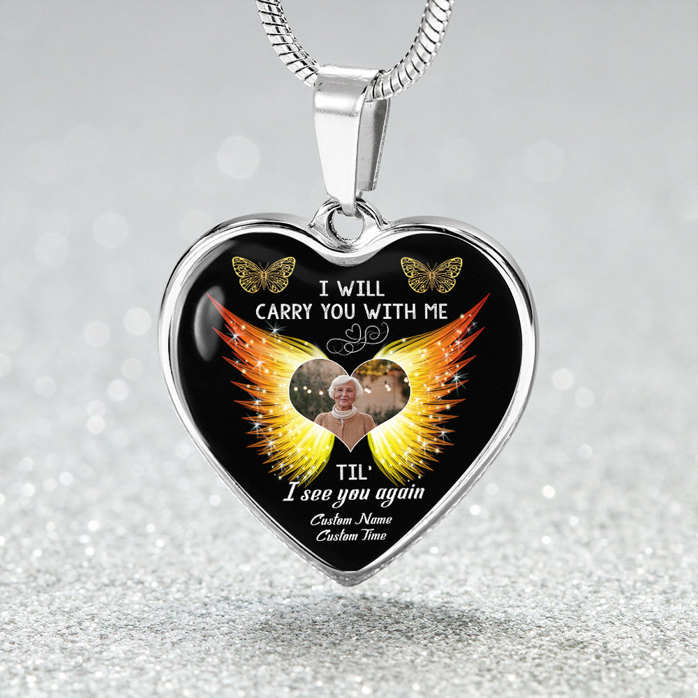 Custom Memorial necklace| I will carry you with me| Bereavement jewelry keepsake gift for loss NNT37
