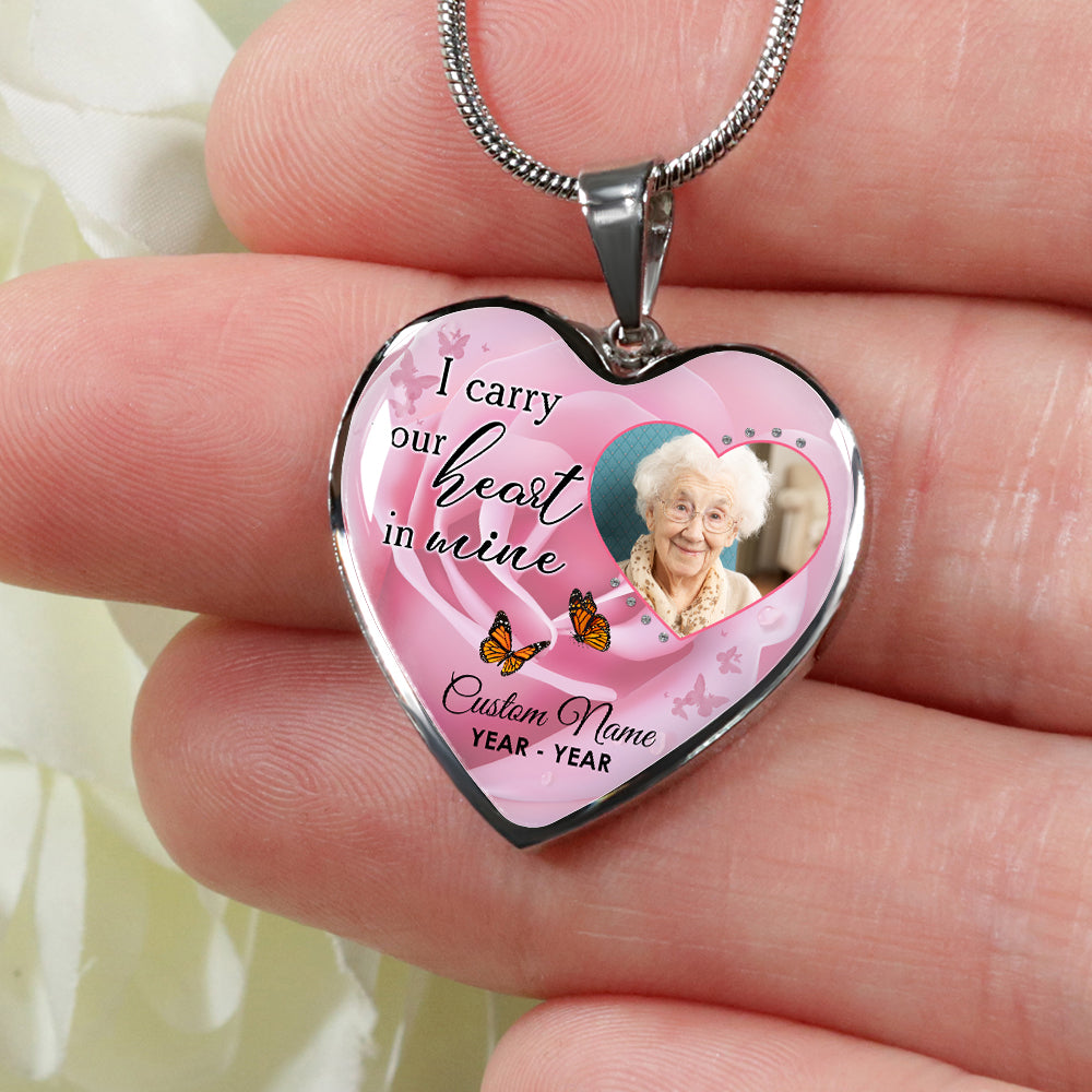 Personalized memorial necklace with picture| I carry your heart| Rememberance jewelry gift for loss NNT32